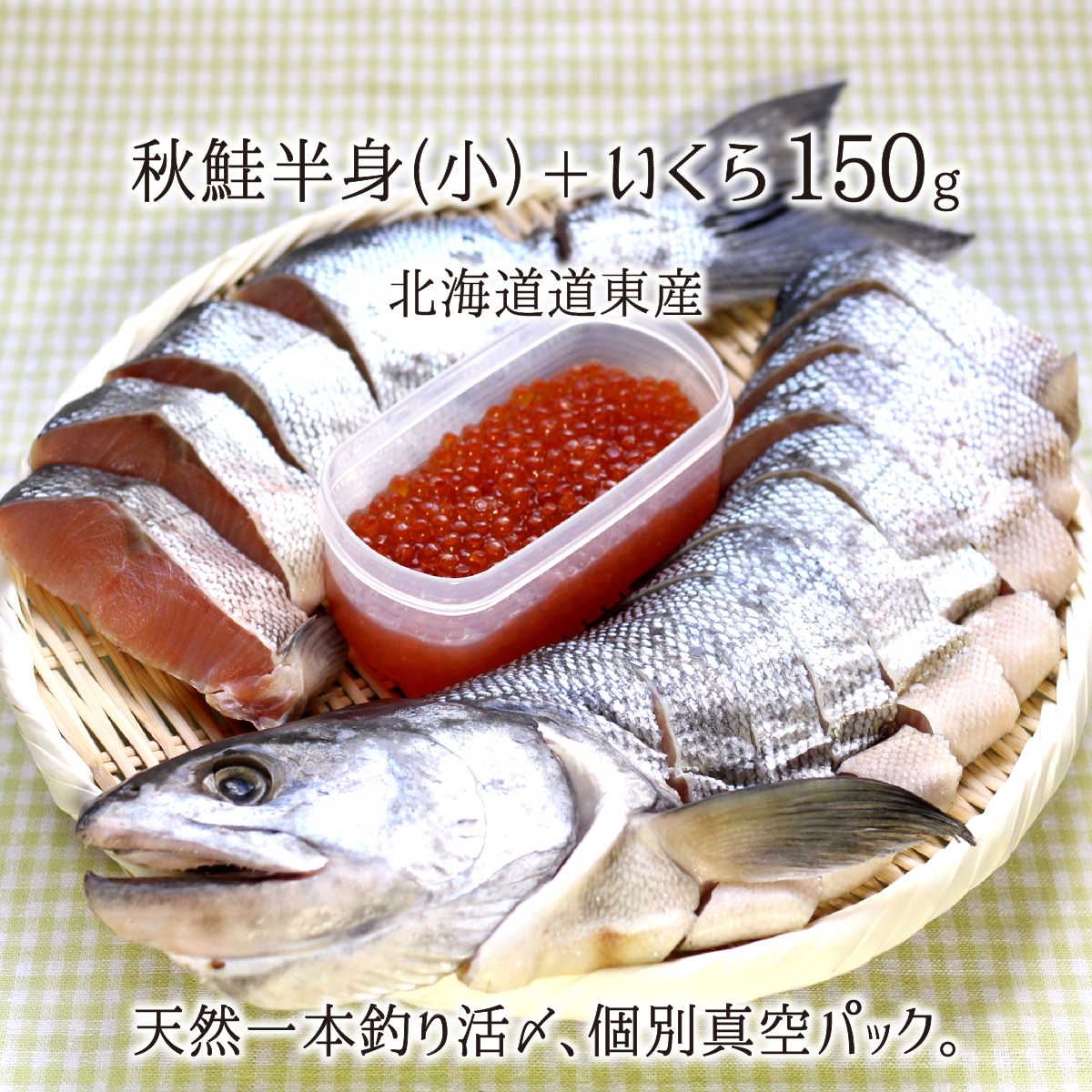 一本釣り活〆 天然秋鮭(小) 半身 切り身 約1.1kg、いくら200g 個別真空パック 熟成鮭 北海道道東産 送料無料