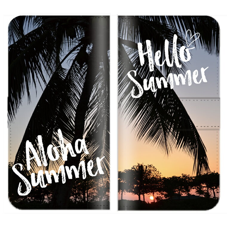 iPhone7 Plus ケース 手帳型 送料無料 Hello Summer デザイン ALOHA サマー ヤシの木 Palm tree Aloha アロハ ハワイアン BEACH ビーチ SURF サーフ 夕焼け 風景 砂浜 貝 シェル グリーン ブルー ホワイト オレンジ カワイイ