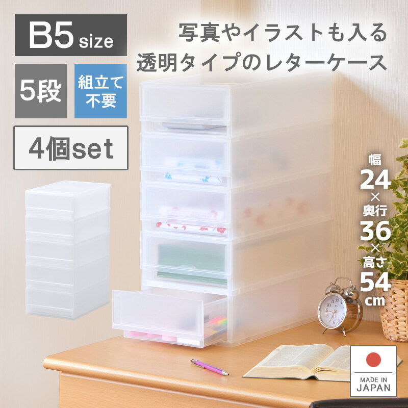 【送料無料】《お徳用4個セット》【プラストフォトPHB505】書類 レターケース 整理ケース 事務用品 B5 5段 引き出しケース 小物入れ 収納ケース 伝票 薬 封筒 靴下 ハガキ 化粧品 アクセサリー 文具入れ ギフト デスク 日本製 巣ごもり #外出自粛