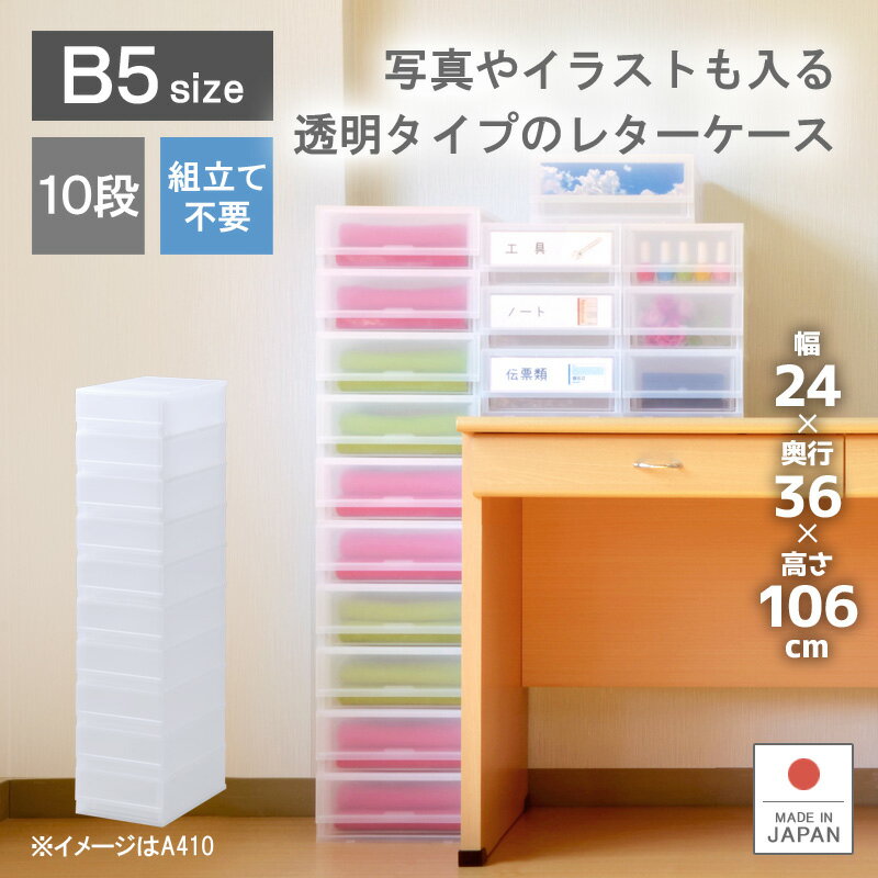 【プラストフォトPHB510】書類 レターケース 整理ケース 事務用品 B5 10段 引き出しケース 小物入れ 収納ケース チェスト 伝票 請求書 封筒 ハガキ アクセサリー 文具入れ デスク脇 日本製 多段式 プラスチック製 伸和 シンワ 巣ごもり #外出自粛