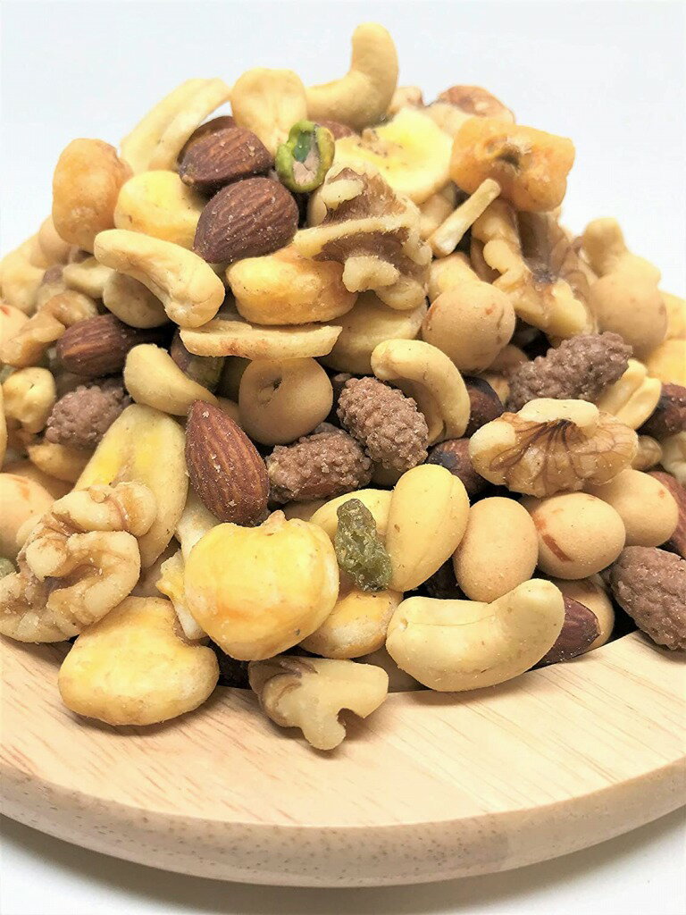 重量 1.02 Kg サイズ 32 x 21 x 5 cm 原材料 【原材料名】落花生、砂糖、ネオマスレーズン、ジャイアントコーン、アーモンド、くるみ、カシューナッツ、ピスタチオ、バナナ、植物油、小麦粉、でん粉、ココアパウダー、食塩、切りいか、こしょう/膨張剤、調味料(アミノ酸等)、香料●本品製品工場では、小麦、卵、乳、落花生、えび、かにを含む製品を生産しています。